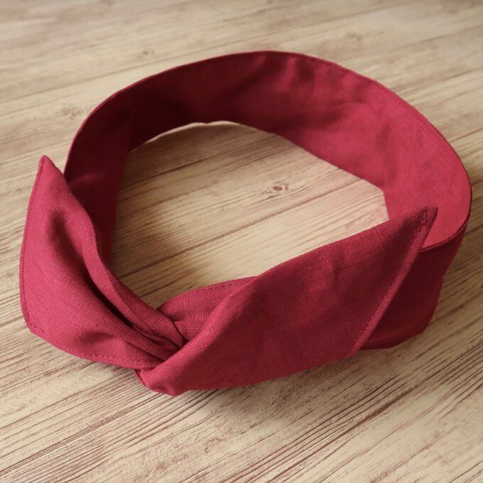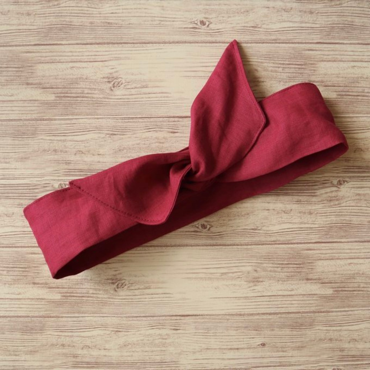 リネンの落ち着いた赤が、どんな装いにも華やかさを添えます。