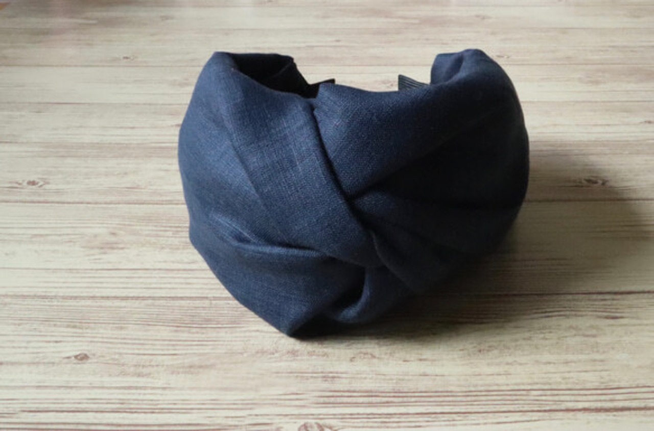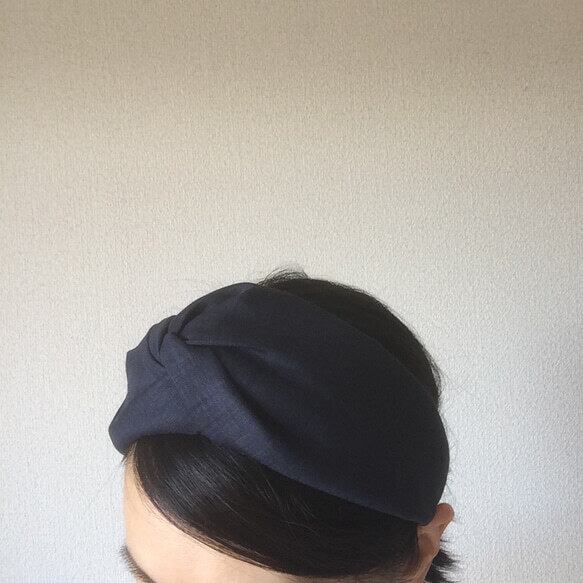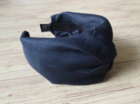 大人の魅力を引き立てる、リネン生地を使用したクロスターバン風カチューシャ。