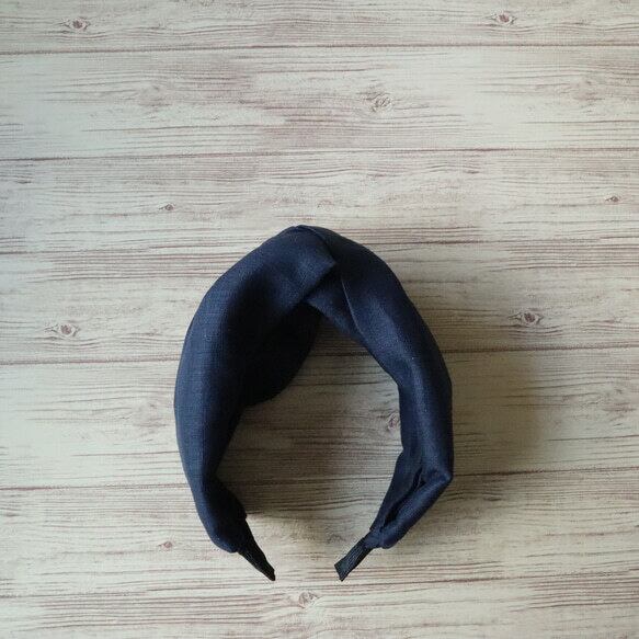 ふんわりとしたソフト感を楽しめるこのカチューシャは、濃いネイビーの色合いが上品さを演出します。