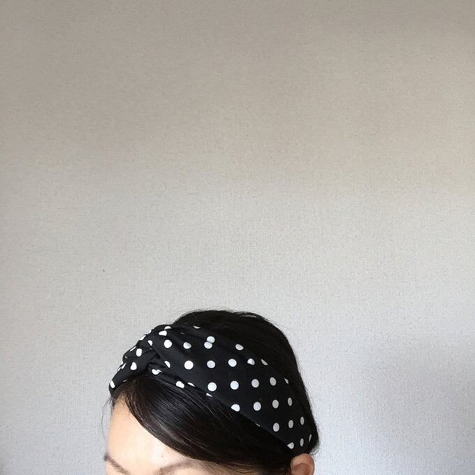 大人のカジュアルスタイルにぴったりな、モノトーンドットのクロスターバン風カチューシャです。