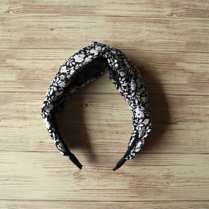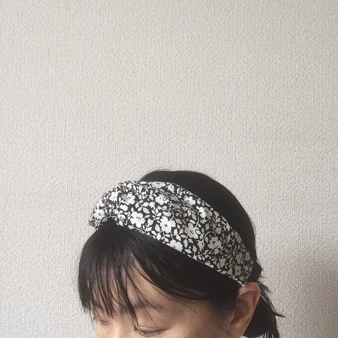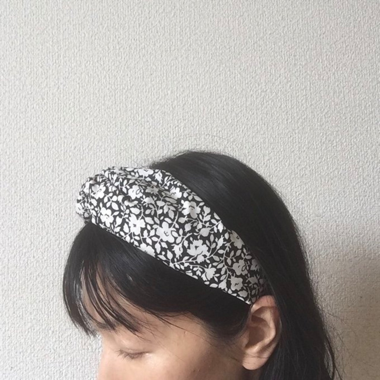 エレガントでシックな花柄のコットン生地をふんだんに使用したクロスターバン風カチューシャです。