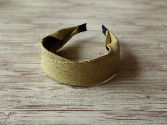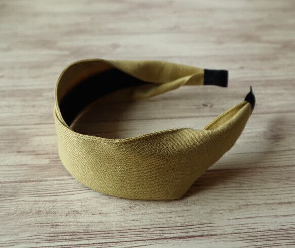 上質なリネン素材を贅沢に使用した、シンプルで洗練されたツイストデザインのカチューシャです。マスタードの色合いが肌に自然に馴染みながらも、コーディネートにアクセントを加えてくれます。