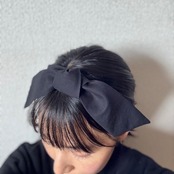 どんなシーンにもぴったりなブラックのコットン生地で作られた、エレガントなリボン付きカチューシャです。
