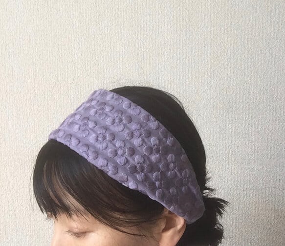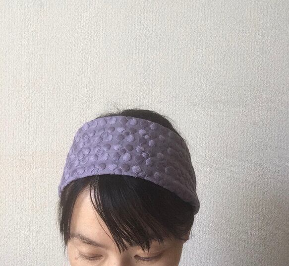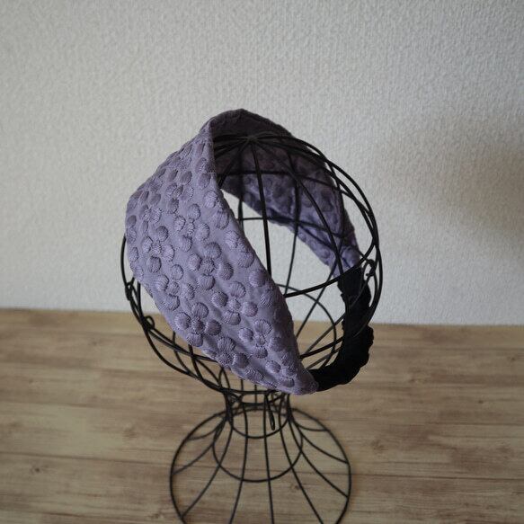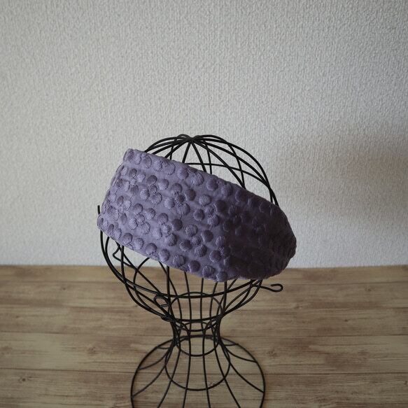 毎日の装いに愛らしさと上品さを添えるグレイッシュな薄紫色のヘアバンド。