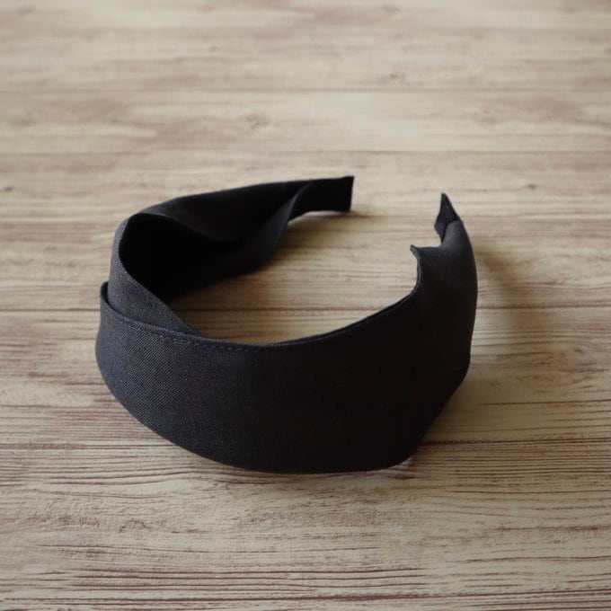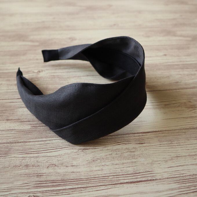 リネンのチャコールグレー生地を使用したシンプルなデザインが特徴のカチューシャ。