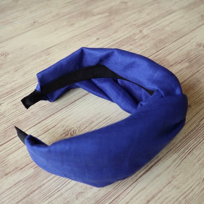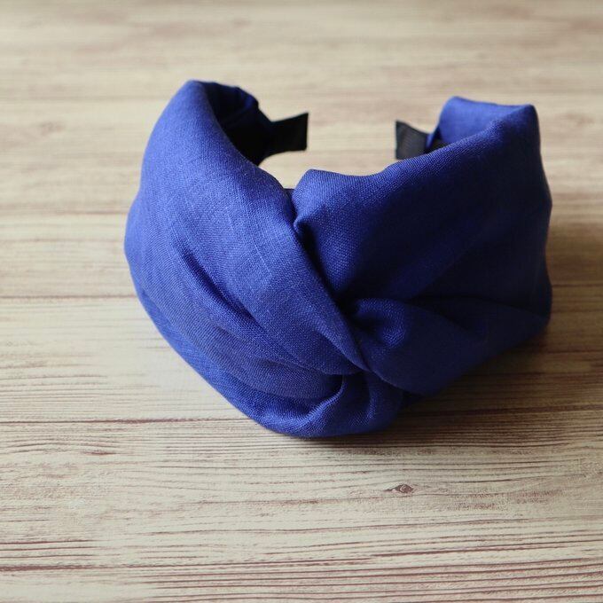 鮮やかなロイヤルブルーが目を引く、このリネンのクロスターバン風カチューシャは、日常のスタイルにエレガントなアクセントを加える一品です。