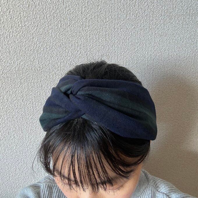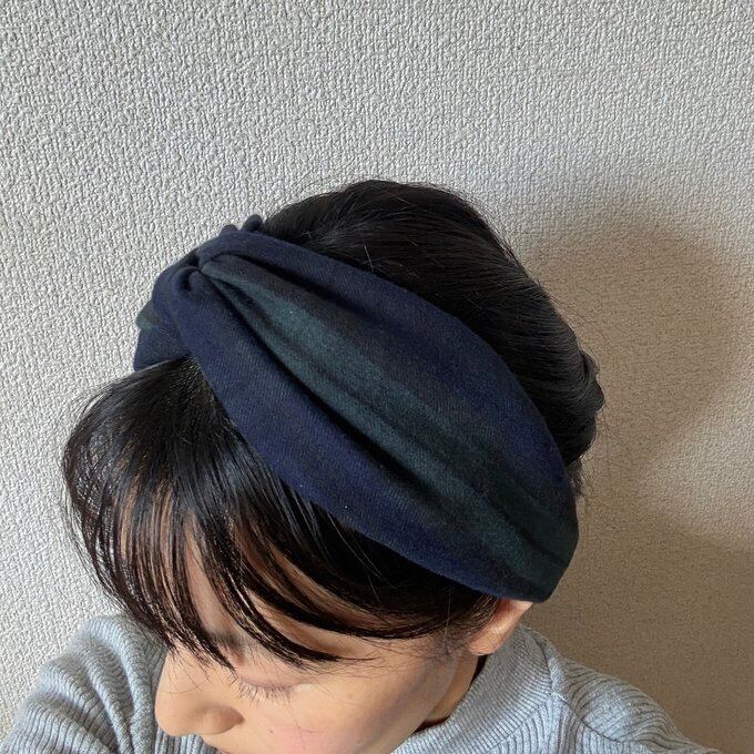 起毛コットンのクロスターバン(タータンチェック・ブラックウォッチ)chika 幅広ターバン 大人ターバン