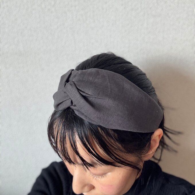 クロスターバン型カチューシャ(リネン・チャコールグレー)ターバン風カチューシャ 幅広カチューシャ