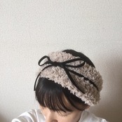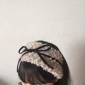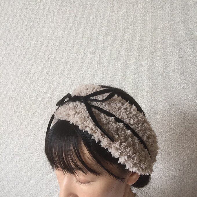 リボンを前で結ぶとガーリーな印象に、後ろで結べばシンプルで可愛らしいもこもこヘアバンドに変身。