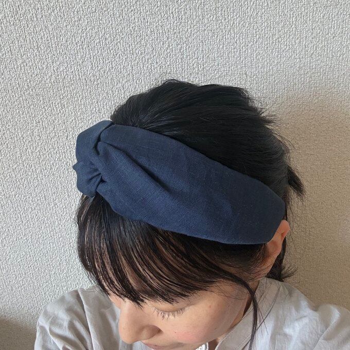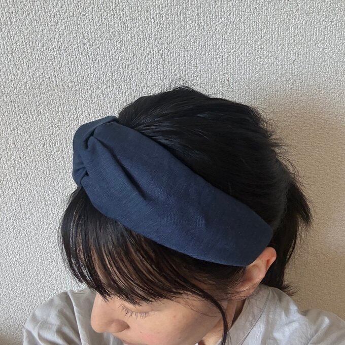 クロスターバン型カチューシャ(リネン・ネイビー)ターバン風カチューシャ 幅広カチューシャ