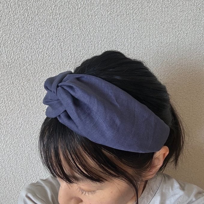 クロスターバン型カチューシャ(リネン・ネイビーパープル)