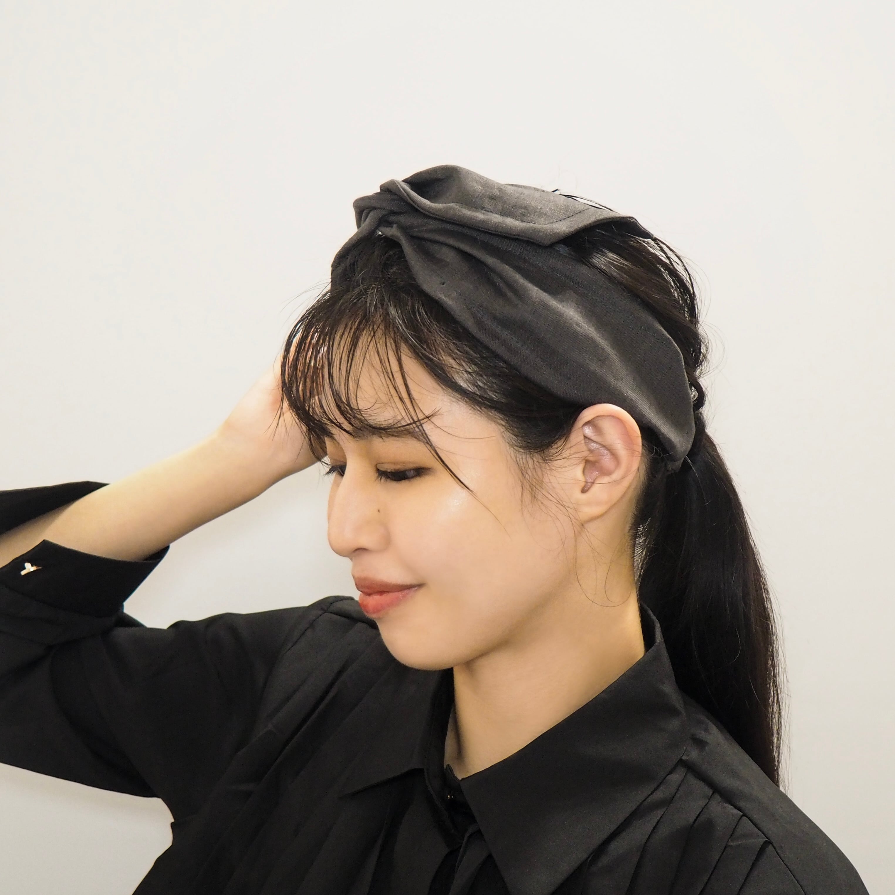 柔らかさと上品な光沢を持つリネンのチャコールグレーの生地を使用した、ワイヤーターバンです。