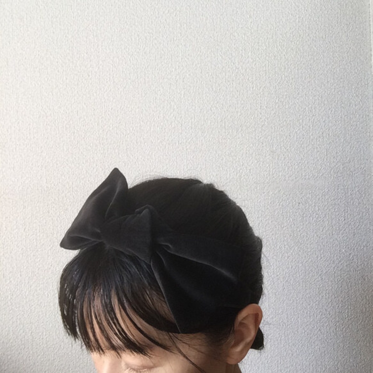上品な光沢と柔らかな起毛が魅力の別珍の生地で仕立てたリボンカチューシャは、大人の女性のためのエレガントなアイテムです。