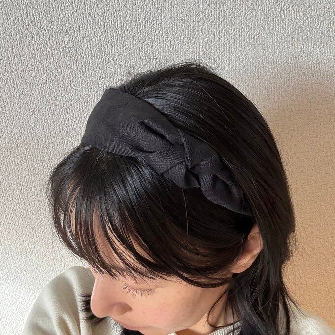 リボン風のシンプルカチューシャ(リネン・ブラック)ヘアバンド ターバン 黒 大人カチューシャ 黒 卒業式 卒園式 フォーマル